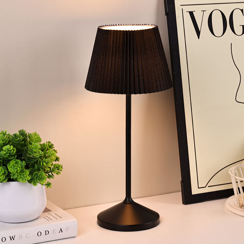 Dteagmháil lasc dimmingTá uigeacht den scoth ag an gclúdach éadach dubh, fillteacha íogair agus cisealta, cosúil le saothar ealaíne fíorálainn, ag cur elegance agus grá leis an lampa ar fad. Exudes an bonn miotail toughness agus íogaireacht, tá sé sturdy, durable, agus tá cobhsaíocht maith, ag comhlánú an clúdach fabraice