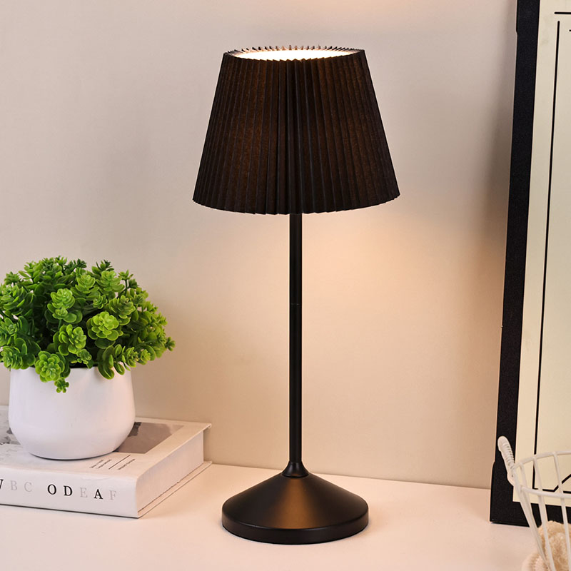 Tá lampa deasc Black Led le scáth fabraice feistithe le trí leibhéal feidhm dimming, ar féidir leo freastal ar do riachtanais éagsúla i gcásanna éagsúla. Nuair is mian leat atmaisféar codlata suaimhneach agus soothing a chruthú, déan é a shocrú go réidh go dtí an leibhéal is ísle, agus beidh an solas bog te cosúil le gealach geal, ag caitheamh glow serene agus ag gabháil leat chun codladh go síochánta Tá ceallraí tógtha i lampa deasc Black Led le scáth fabraice freisin, rud a chuireann go mór lena áisiúlacht úsáide lena dhearadh tuisceanach