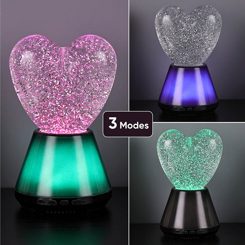 Is bronntanas speisialta deartha do leanaí é solas oíche croí glitter faoi stiúir rialaithe Bluetooth a chomhcheanglaíonn dearadh croí-chruthach, athsheinm ceoil Bluetooth, ábhar plaisteach sábháilte agus iontaofa, sreabhadh glitter leachtach, agus claochlú datha. Ní hamháin gur solas oíche praiticiúil é, ach freisin saothar ealaíne draíochta a ligeann do leanaí taitneamh a bhaint as oíche álainn amháin i ndiaidh a chéile i soilsiú te agus ceol iontach.