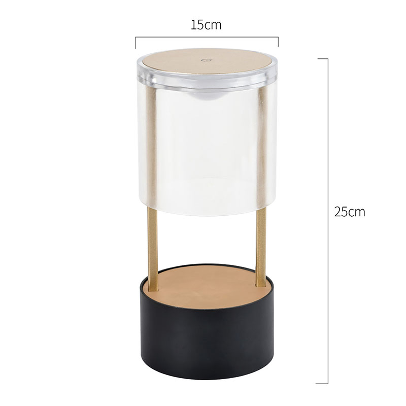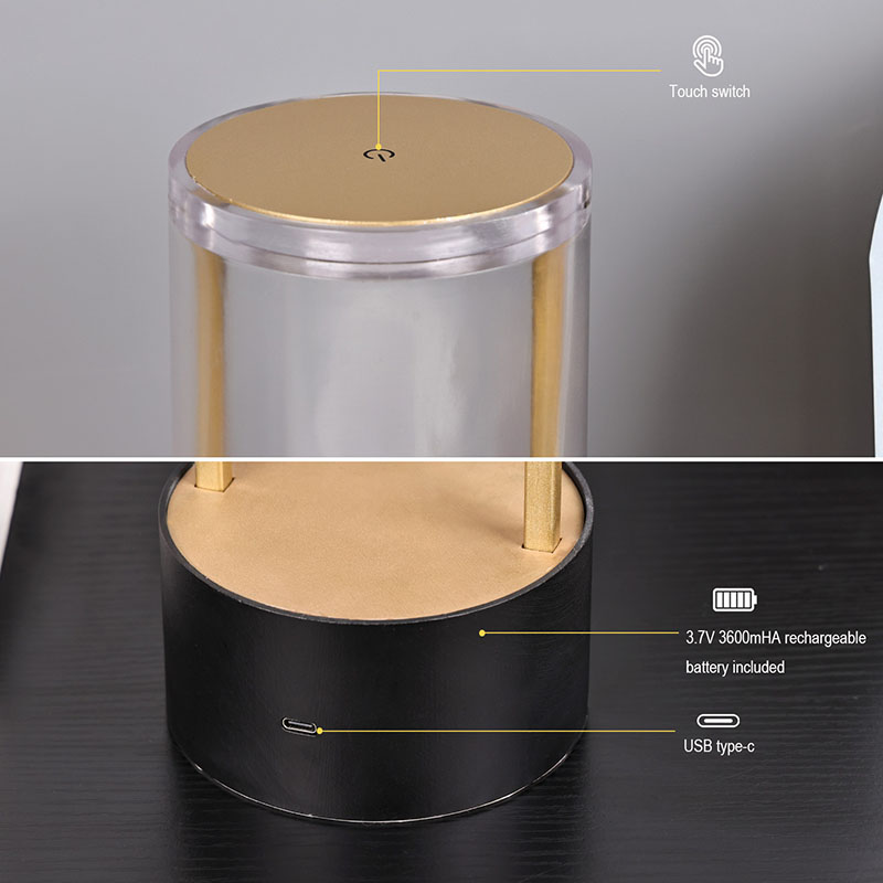 Is lasc éadrom dteagmháil íogair é barr an Lampa Tábla Beaga Stíl Lantern, le ceann luchtaithe in-athluchtaithe cineál-c ag an mbun. Tá an barr comhdhéanta de chlúdach trédhearcach aicrileach, agus is bonn miotail é an bun. Ceadaíonn an struchtúr ciorclach foriomlán soilsiú sochorraithe