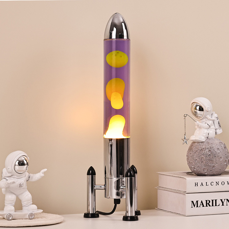 Lampa Lava mór faoi stiúir le braoiníní dath scáth roicéad, amhail is dá mbeadh pláinéid na cruinne ag athrú i gcónaí, cruthaítear áilleacht mistéireach agus síochánta.