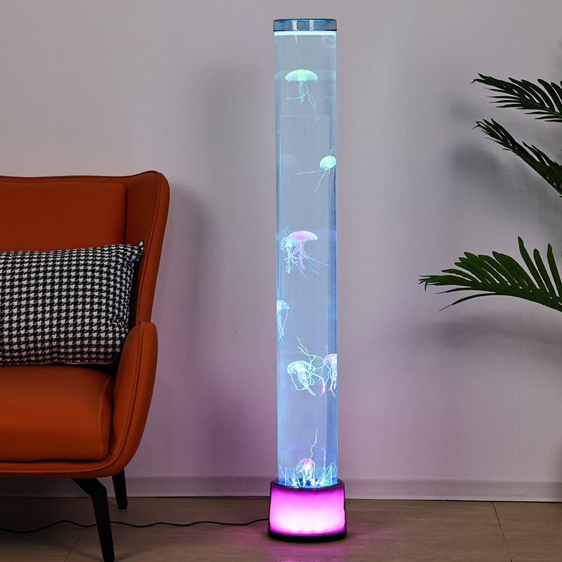 39.5*39.5*115CMIs píosa maisiúcháin baile cruthaitheach é Lampa Smugairle róin Urlár Mór RGB a chumasc teicneolaíocht nua-aimseartha le haistéitic nádúrtha, a bhfuil éifeachtaí éadroma aislingeacha agus dearaí smugairle róin ar an saol.