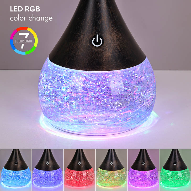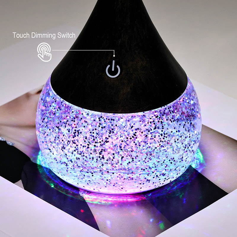 Is gné shuntasach é lampa deisce faoi stiúir solais te le buidéal glitter RGB, ina bhfuil buidéal trédhearcach líonta le leacht neamhthocsaineach, neamhdhíobhálach don chomhshaol agus píosaí confetti machnamhach. Nuair a chuirtear faoi thiomáint air, soilsíonn an bonn i speictream dathanna RGB is féidir a shocrú chun rothaíocht trí phatrúin éagsúla nó faoi ghlas ar dhath amháin. Cruthaíonn an leacht agus an confetti taobh istigh éifeacht amhairc dinimiciúil atá ag athrú de réir mar a bhogann siad i bpatrúin nach féidir a thuar mar gheall ar mheicníochtaí inmheánacha nó creathadh caolchúiseacha ón timpeallacht máguaird. Ní hamháin go gcuireann an dearadh uathúil seo teagmháil le Whimsy le haon deasc ach feidhmíonn sé freisin mar thosaitheoir comhrá agus mar thacadóir giúmar.