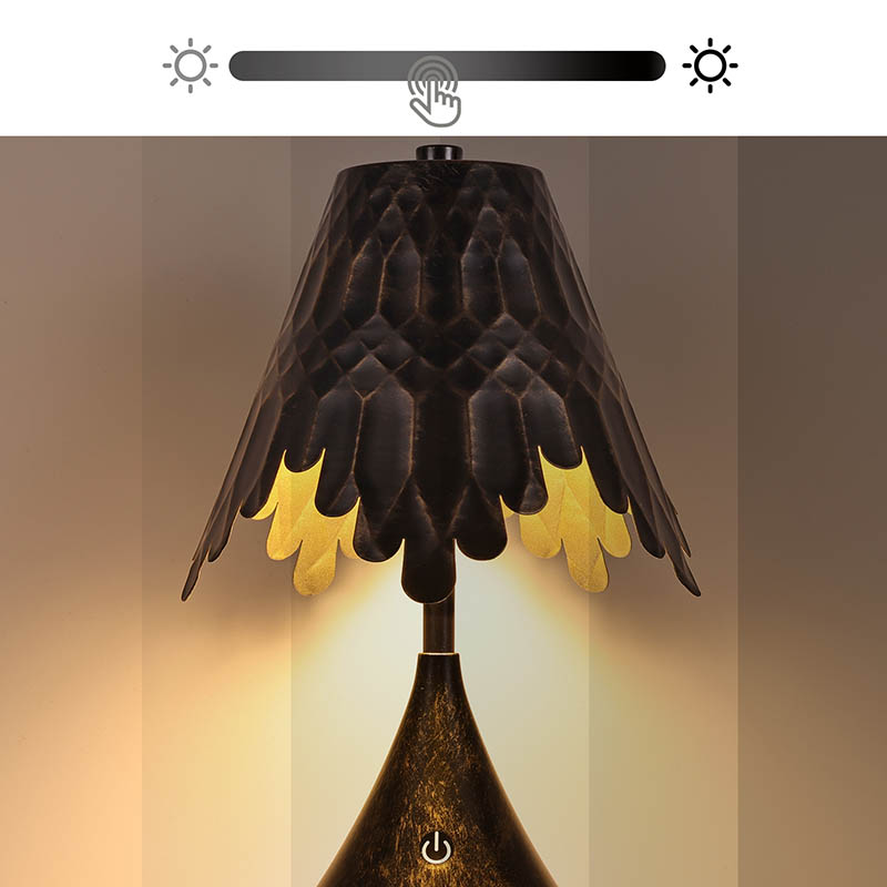 Is é croílár dearadh ár lampa deisce a scáth scáth miotail galánta. Tá an scáth ar fáil ó mhiotail ardchaighdeáin, marthanach ar nós cóimhiotal alúmanaim nó cruach dhosmálta, agus cuireann an scáth cuma nua-aimseartha ar fáil agus cobhsaíocht agus fad saoil á chinntiú. Ceadaíonn an scáthstruchtúr dáileadh leathan agus fiú éadrom, scáthanna agus dalladh a íoslaghdú, foirfe do thascanna cosúil le léamh, scríbhneoireacht, nó obair mhionsonraithe. Tá an scáth inchoigeartaithe, rud a ligeann d'úsáideoirí an solas a uillinn go beacht nuair is gá, ag feabhsú solúbthacht agus compord.