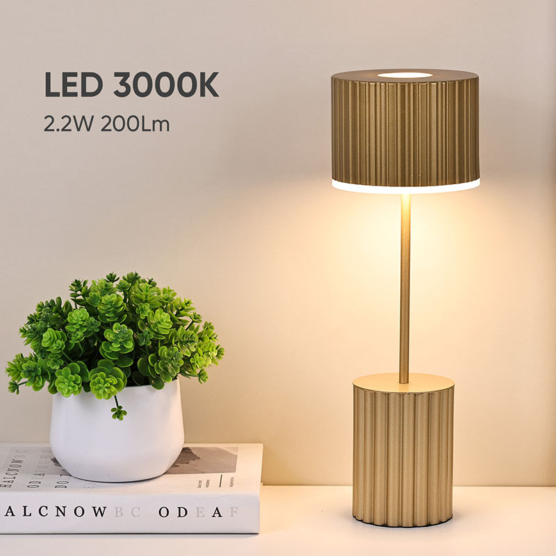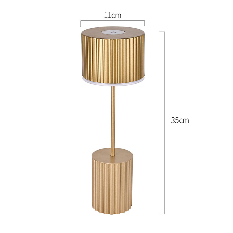Lasc tadhaill (muirear cineál-c)D'fhonn freastal ar riachtanais soilsiú cásanna éagsúla, scáth Miotal lampa tábla beag le batteryis feistithe le feidhm dimming 3-luas chun cinn. Le hoibríochtaí simplí, is féidir leat déine an soilsithe a choigeartú go saor.