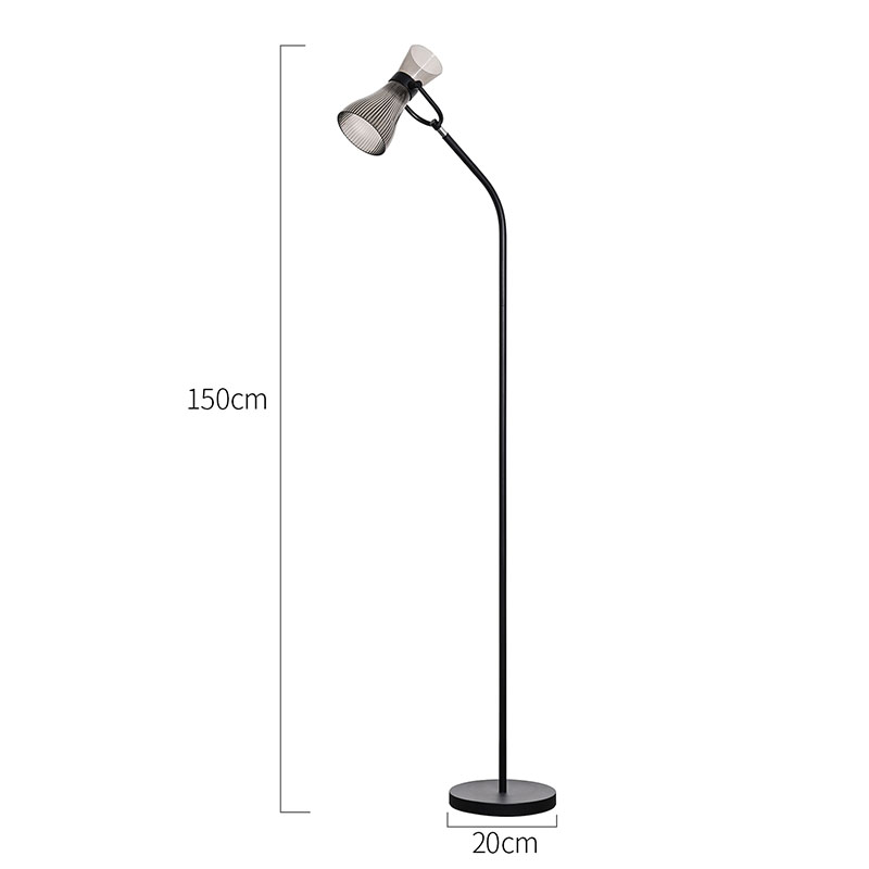 Lasc maolú na coiseGlacann lampa urláir faoi stiúir nua-aimseartha le scáth gloine coincheap dearaidh íostach, le cruth foriomlán simplí fós stylish. Tugann airde de 150 ceintiméadar agus trastomhas bonn de 20 ceintiméadar láithreacht leordhóthanach dó gan dul i mbun spáis iomarca. Tá an tslat miotail agus an bonn snasta go mín, le dromchla mín agus íogair,