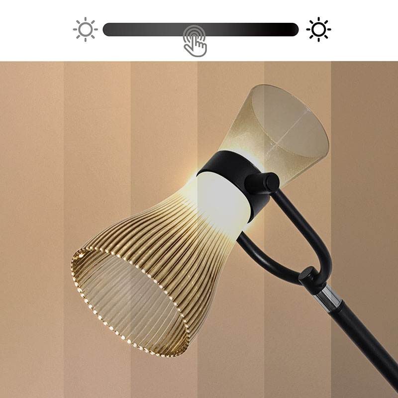 tá feidhm ag foinsí freisin maidir le gile inchoigeartaithe. Le hoibriú simplí, is féidir leat neart an tsolais a choigeartú go saor de réir riachtanais agus radhairc éagsúla. Cibé an dteastaíonn solas geal uait chun leabhair a léamh nó má tá soilsiú bog uait chun atmaisféar rómánsúil a chruthú, Is féidir le lampa urláir nua-aimseartha faoi stiúir le scáth gloine do chuid riachtanas a chomhlíonadh go héasca.