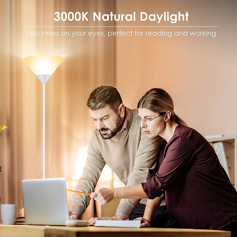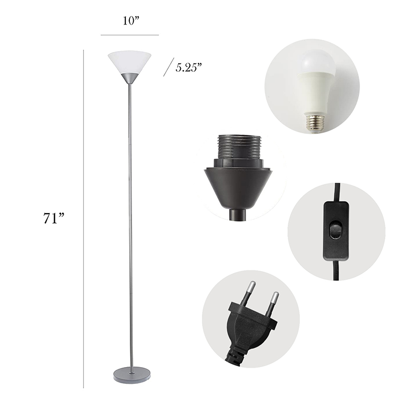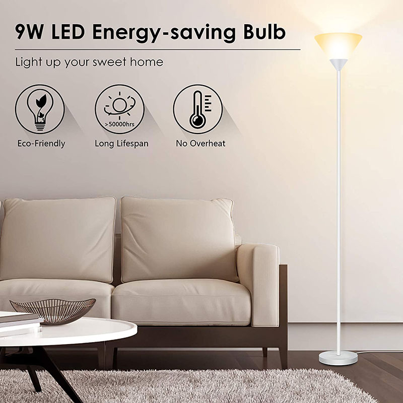 an clúdach urláir lampa le bolgán coigilte fuinnimh 9W LED. Soilsíonn bolgán solais an táirge aníos chun dazzling a sheachaint agus do shúile a chosaint.