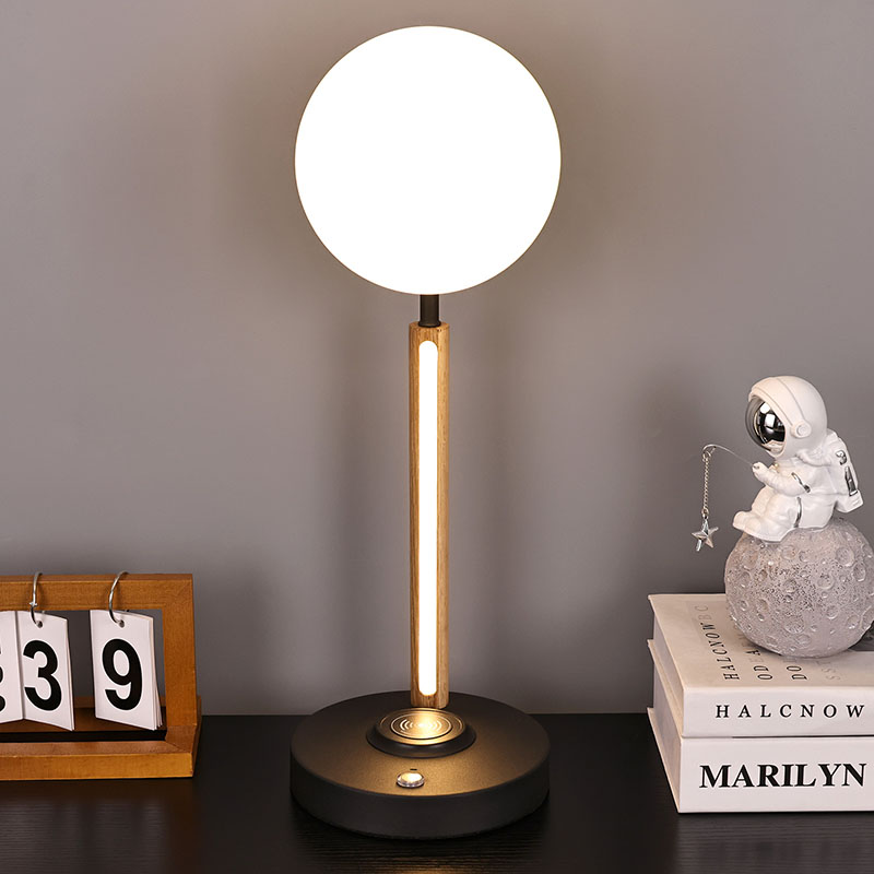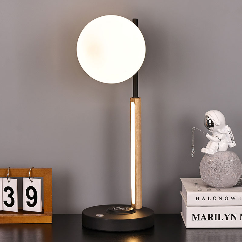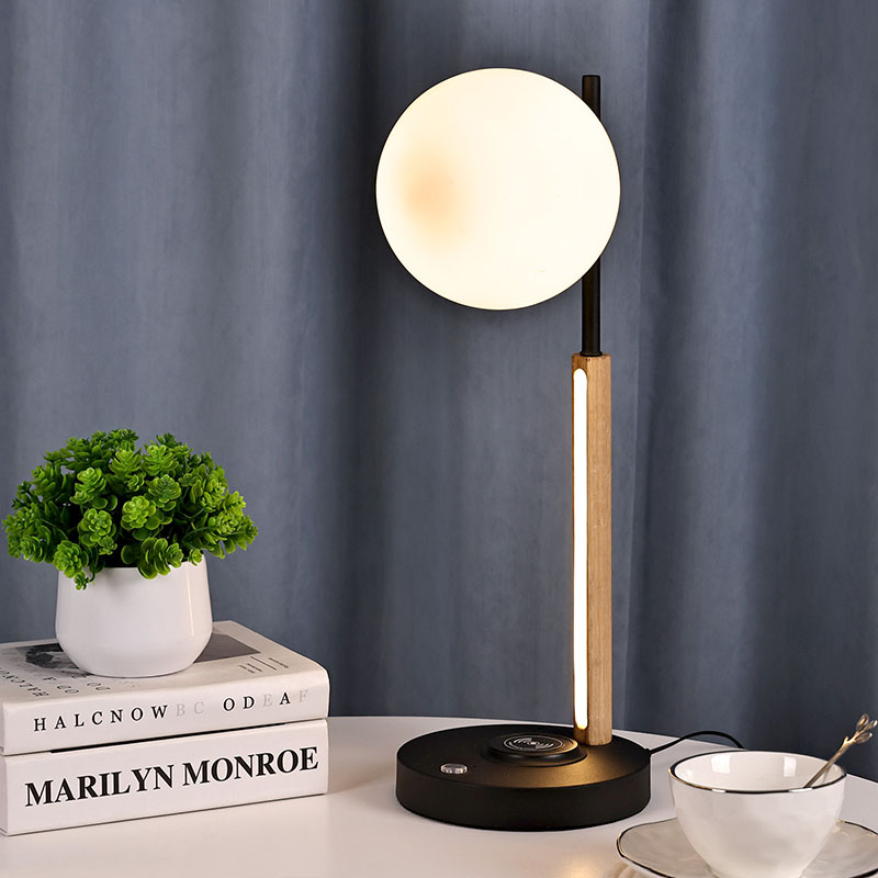 I ndearadh tí nua-aimseartha, is féidir le lampa a chomhcheanglaíonn áilleacht agus praiticiúlacht charm gan teorainn a chur le do spás maireachtála. QI gan sreang Tá lampa deisce faoi stiúir comhlacht adhmaid le scáth lampa gloine sféarúil, comhlacht lampa adhmaid le soilse gearrtha faoi stiúir, agus déine solais inchoigeartaithe. Leis an gcuma simplí fós stylish, a fheidhmeanna solúbtha agus ildánacha, agus ábhair ardcháilíochta, tá sé anois mar do rogha iontach. Ní hamháin gur uirlis soilsithe phraiticiúil é, ach freisin saothar ealaíne a líonann do shaol le féidearthachtaí gan teorainn.