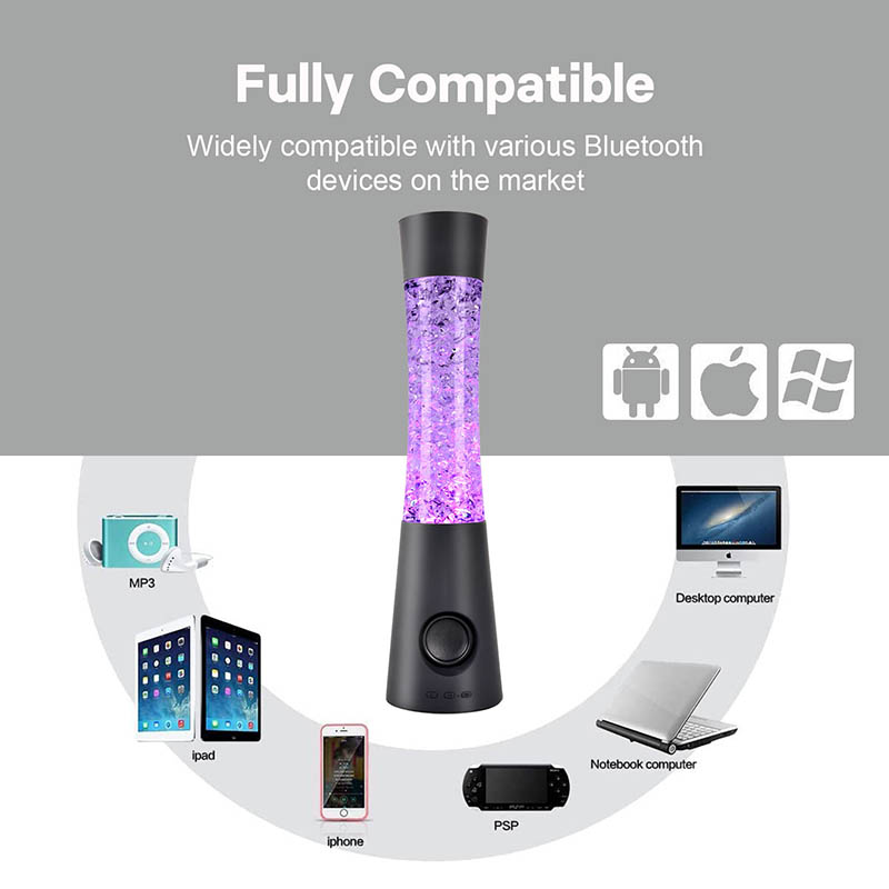 Réamhrá Tabhairt isteach Lampa Cainteoir RGB Bluetooth le Glitter, rud a chuireann uathúil agus stylish le do mhaisiúchán tí. Comhcheanglaíonn an lampa nuálaíoch seo an t-achomharc soothing amhairc a bhaineann le glitter ag gluaiseacht laistigh de cholún leachtach le háisiúlacht nascacht Bluetooth le haghaidh eispéireas ilchéadfach. Déanann dearadh caol an lampa, in éineacht lena ghnéithe feidhmiúla, meascán foirfe d’aeistéitic agus teicneolaíocht.
