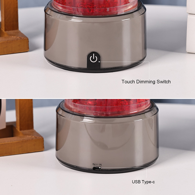 Gnéithe Soilsithe: RGB Dath-Athrú Magic Ceann de na gnéithe is suntasaí den lampa seo ná a chóras soilsithe chun cinn RGB LED, a thairgeann speictream iomlán dathanna agus modhanna soilsithe dinimiciúla. Le teagmháil shimplí den chnaipe cumhachta atá suite ar an mbonn, is féidir le húsáideoirí rothaíocht trí éifeachtaí soilsithe éagsúla: