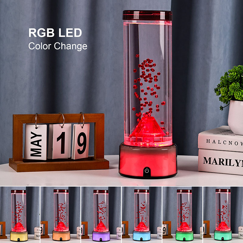 Deartha le haird mhionsonraithe ar mhionsonraí, tá seomra leachtach sorcóireach ag an lampa stiúir seo i gcruth bolcán atá líonta le cáithníní dearga sreabhán soiléir agus ar snámh a shamhlaíonn brúchtadh bolcánach nuair a ghníomhaítear é. Lasann bun an lampa le soilse RGB bríomhara a athraíonn datha, agus bíonn an struchtúr bolcán lárnach ag lasadh le soilsiú lasrach, ag déanamh aithrise ar bhrúchtadh iarbhír. Ag an am céanna, snámhann maisiúcháin íogair cosúil le smugairle róin go galánta laistigh den cholún leachtach, ag cur ambiance surreal faoi uisce. Le chéile, cruthaíonn na heilimintí seo seónna amhairc mesmerizing a chomhcheanglaíonn cumhacht an nádúir le elegance an dearadh nua-aimseartha. Dearadh & Achomharc Aeistéitiúil Seasann an RGB Dath-Athrú ar Bolcán Lampa thart ar 12 orlach déag ar airde, rud a chiallaíonn sé oiriúnach le haghaidh socrúcháin ar deasca, nightstands, seilfeanna, nó mar phíosa maisiúil buailte i seomraí suí, seomraí codlata, nó fiú seomraí ranga. Tá feadán trédhearcach sorcóireach déanta as plaisteach ardcháilíochta, shatter-resistant, ar a scáthchruth caol, nua-aimseartha, a chinntíonn marthanacht agus sábháilteacht. Tá an clúdach barr séalaithe go daingean chun sceitheadh a chosc, agus tá an bonn déanta as plaisteach mín, neamhlonrach le painéal rialaithe ionsuite.