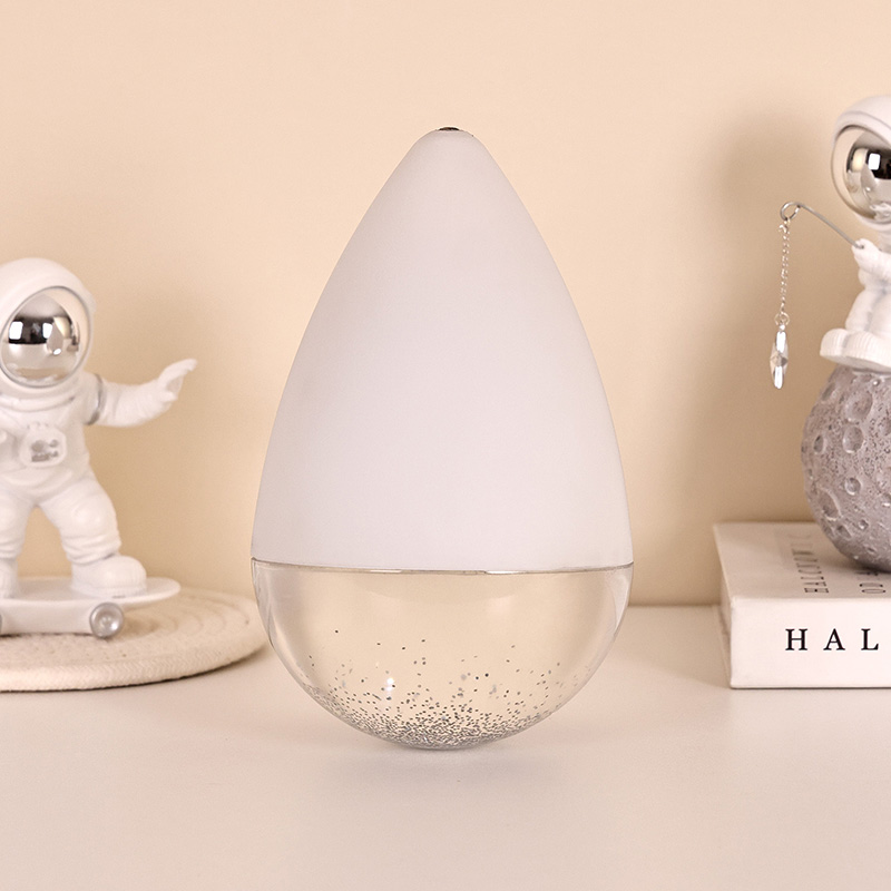 Tá an dearadh múnlaithe ubh iomlán agus an bonn trédhearcach líonta le leacht, rud a fhágann go bhfuil meáchan an bonn i bhfad níos troime ná an ceann, rud a chruthaíonn tumbler