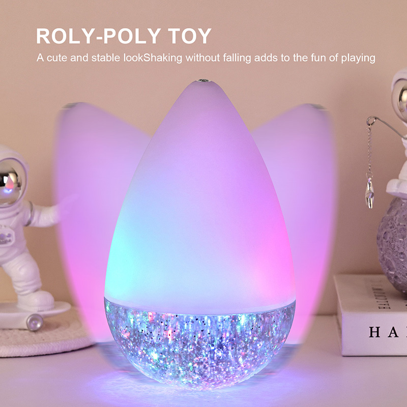 Is é an tréith, is cuma conas a chroith sé, beidh solas oíche bréagán Roly-poly glitter RGB ag seasamh suas
