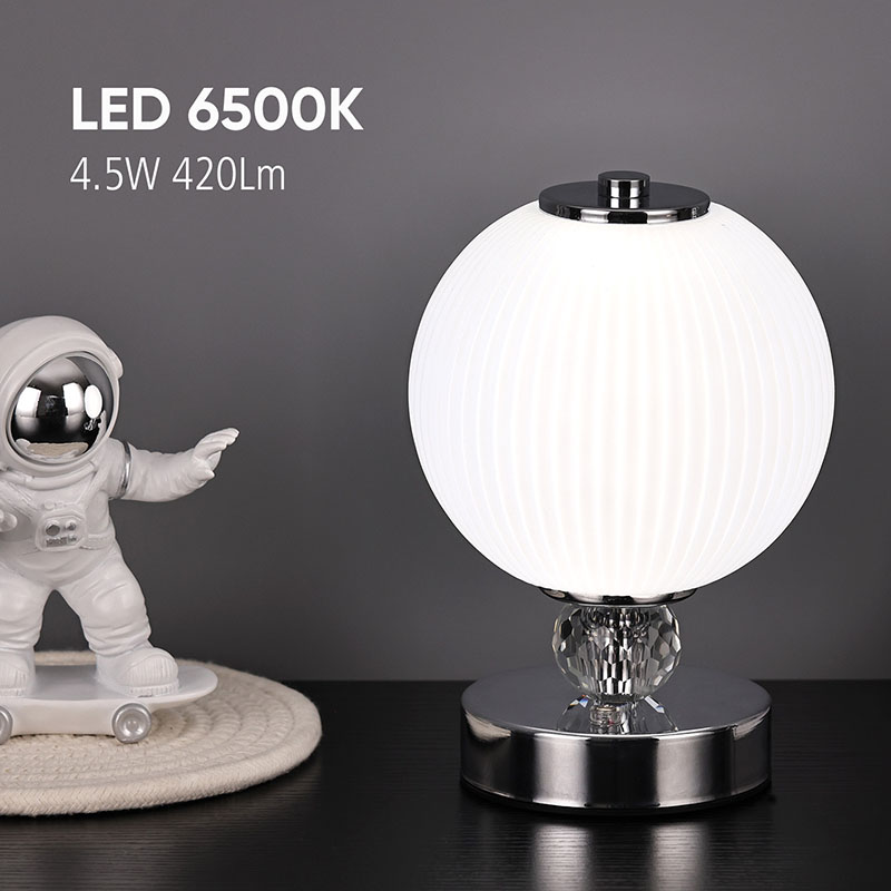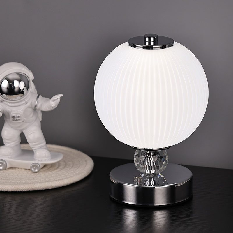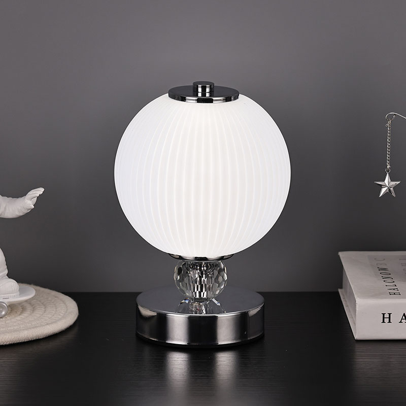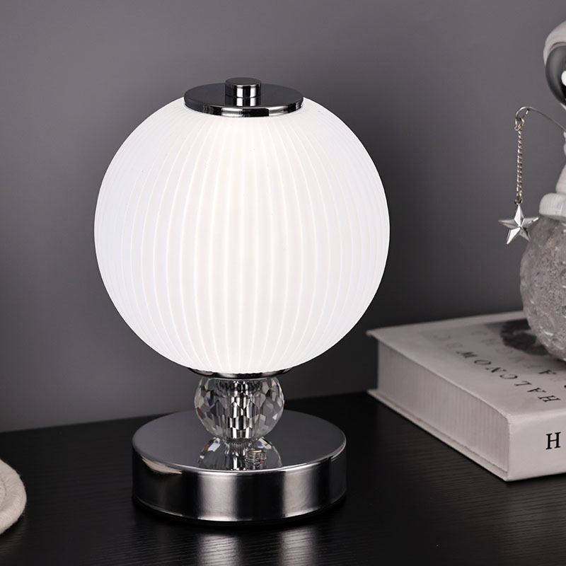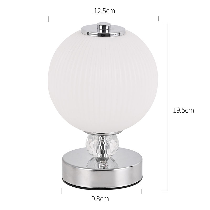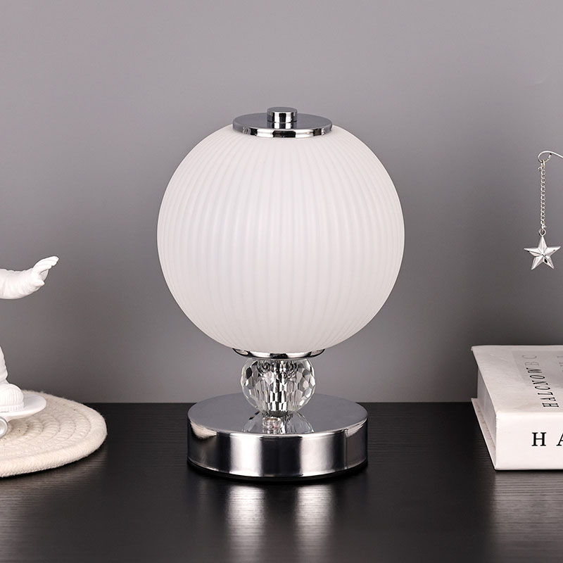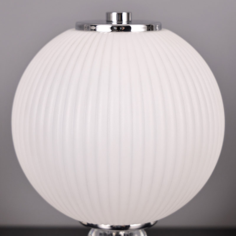 Is é an buaicphointe is mó den lampa deasc mion seo ná a dhearadh scáth lampa sféarúil uathúil. Tá an scáthlán déanta as ábhar gloine ardchaighdeáin, le dromchla réidh agus íogair agus luster bog. Ní hamháin go dtugann dearadh an scáth lampa sféarúil uigeacht íon agus uasal don lampa, ach ligeann sé freisin an solas a astú níos cothroime, rud a chruthaíonn atmaisféar bog agus te.