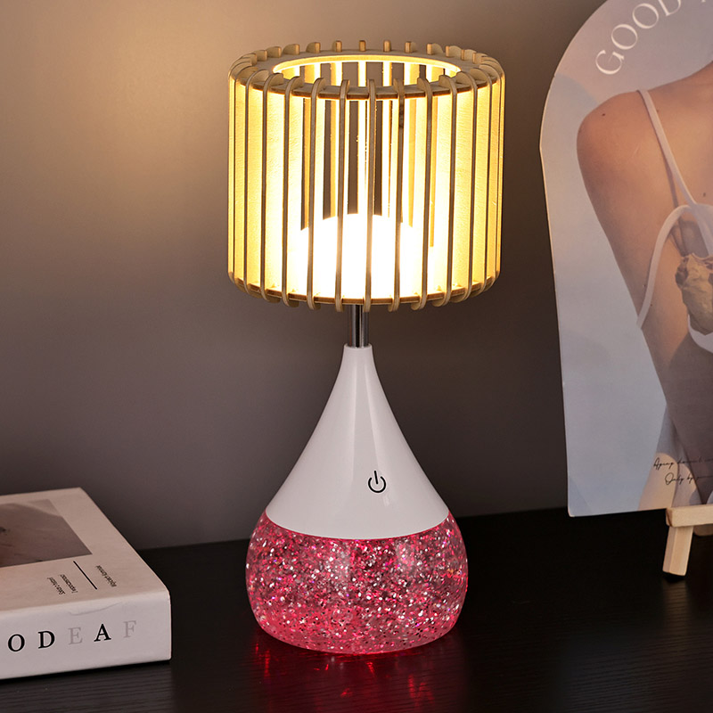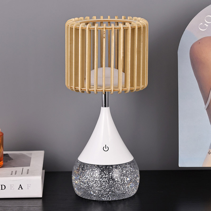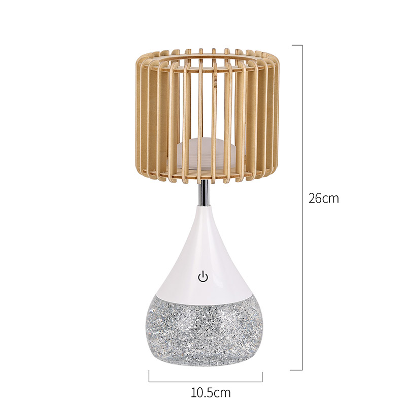 Déanta as ábhair phlaisteacha ardchaighdeáin agus shaighid adhmaid nádúrtha, tógtar an Lampa Tábla LED Dearadh Nua le maireachtáil. Cinntíonn an bonn sturdy cobhsaíocht, rud a ligeann duit é a chur ar aon dromchla gan imní ort. Ciallaíonn an tógáil durable gur féidir leis an lampa seo a úsáid ó lá go lá a sheasamh, rud a fhágann go bhfuil sé ina theannta sin iontaofa agus fadtéarmach le do mhaisiúchán.