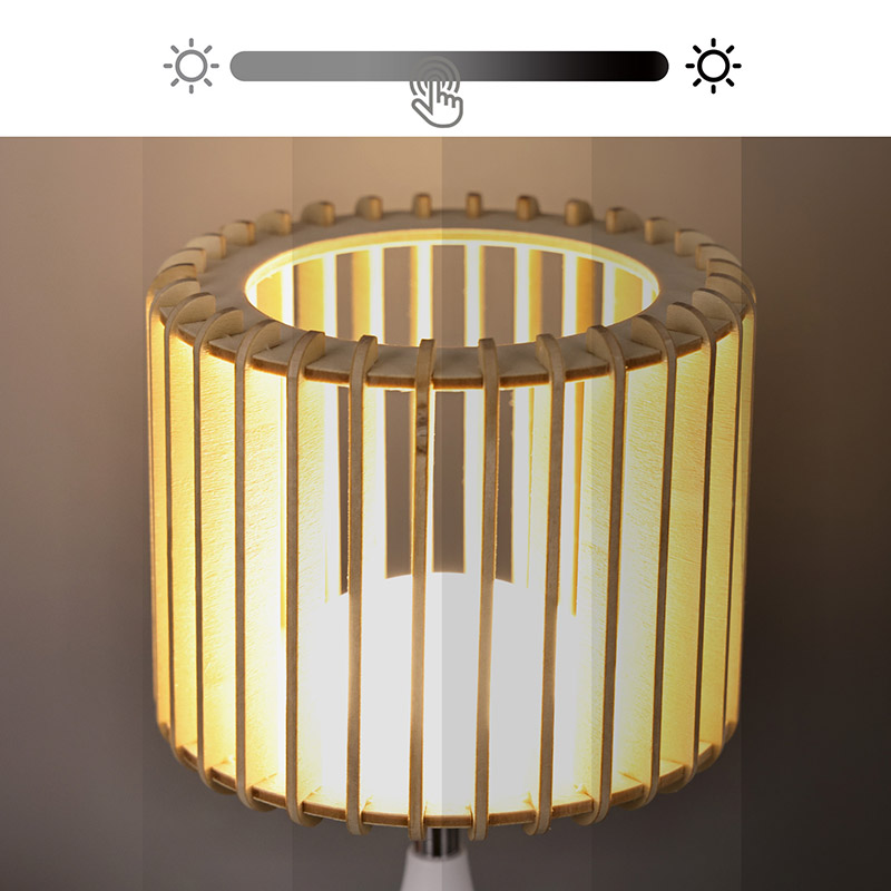 Tá an lampa déanta as plaisteach ardchaighdeáin agus shaighid adhmaid nádúrtha, rud a chinntíonn marthanacht agus sábháilteacht.