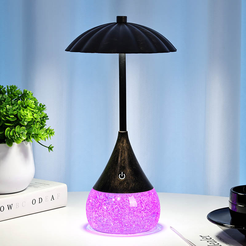 Lampa deasc te faoi stiúir éadrom le buidéal glitter rgb