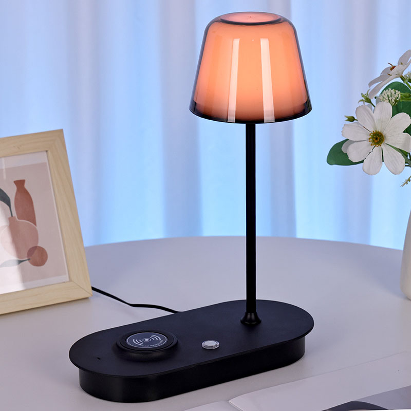 Traidisiún Is féidir le lampa deisce faoi stiúir bonn adhmaid le luchtaire gan sreang an fón a athluchtú le tadhaill dimmer
